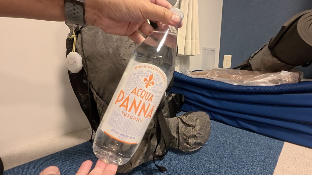 細身のボトルでバックパックのサイドポケットに入れやすい。1本150円とお買い得で、飲み切った後も再利用したくなるおしゃれなデザインです。
