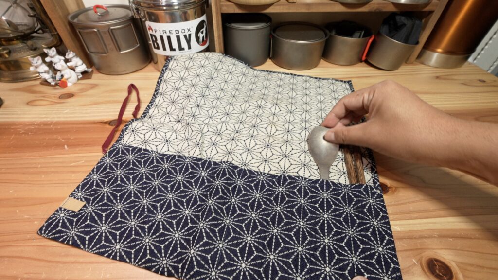岡山デニムを使用した日本製。様々なサイズのカトラリーを収納でき、ペグケースとしても活用可能です。