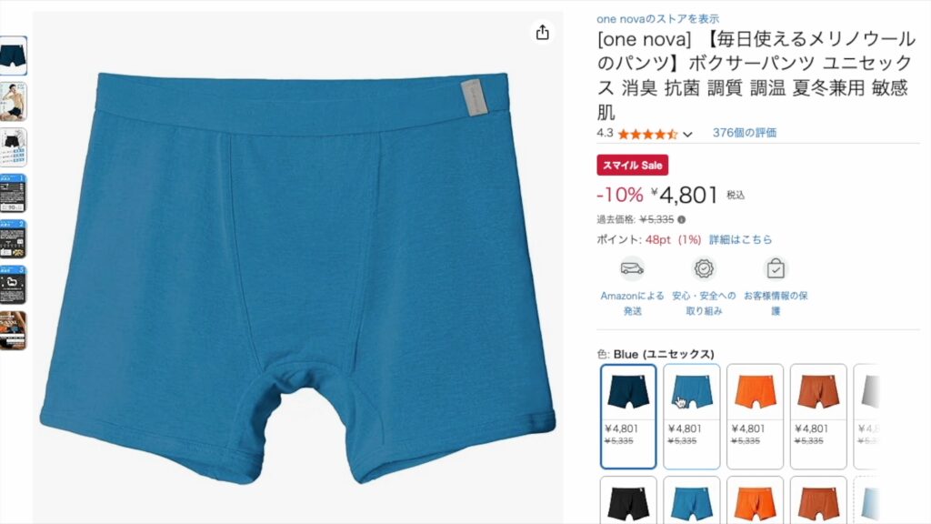 メリノウールにモダールを織り込んだ高機能パンツ。シルクのようなサラサラ感で、何といっても臭わないのが最高です。