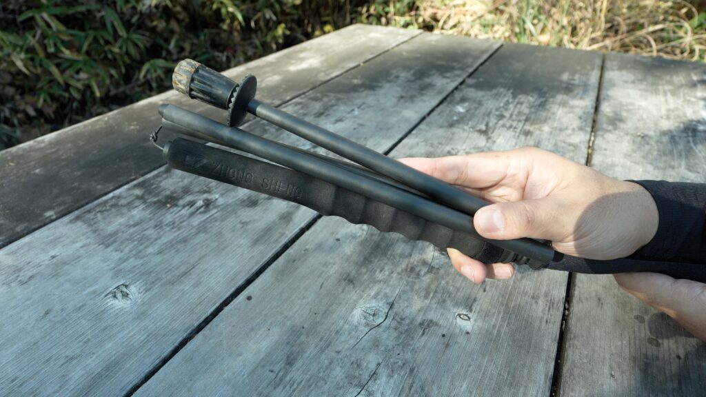 今年のAmazon登山ギア界で間違いなく最大のヒット商品です。カーボン製のトレッキングポールは通常1本1万円以上、ブランド品なら2本セットで3〜4万円が相場ですが、これは2本で5,999円という驚きの価格。実測重量は1本あたり120gで、2本持っても240gとりんご1個分程度の軽さです。半年間ほぼ毎週末使い続けていますが、折れる気配すらありません。カーボン素材が衝撃を吸収してくれるため、地面についた時の手への負担が格段に少なく、特に下りで違いを実感できます。110cm、120cm、130cmの3サイズから選べて、シンプルなショックコード式で組み立ても簡単です。