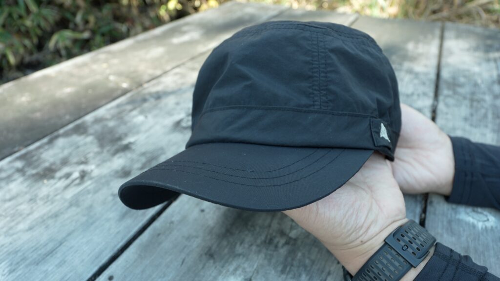 サイズが60-62cmまであるのが最大の特徴です。登山系の速乾キャップは小さいものが多いのですが、これなら頭が大きくてもゆったりかぶれます。表地がナイロン70%に綿30%、裏側はポリエステル100%のメッシュ素材で、おでこに当たる部分が吸水速乾素材になっています。洗濯しても型崩れしないのもポイントです。