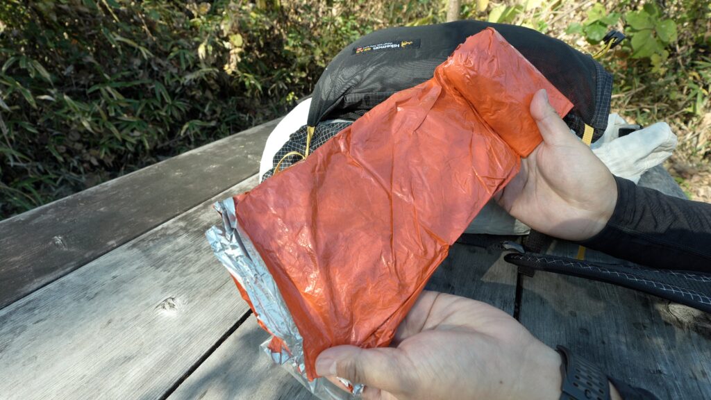体熱の90%を反射する特殊素材「ヒートリフレクティブシェルター」を採用しており、重さはたったの70gです。普段は敷物としても使えるし、グループ登山ならみんなの休憩用シートにもなります。