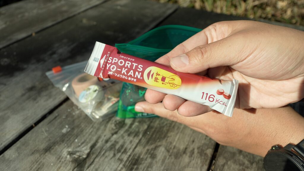 1本あたり120円程度で、1本で110kcalちょっとのエネルギーを補給できます。押し出すだけで食べられる容器が秀逸で、グローブをしたままでも食べられます。何より食べても喉が渇きにくいのがお気に入りです。