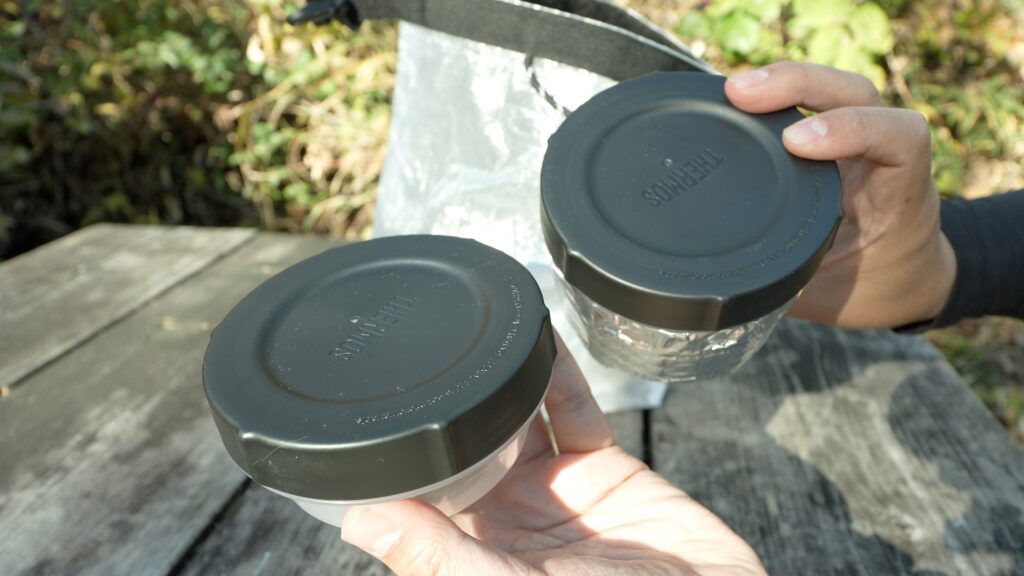 蓋の作りが流石のサーモスで、パッキンがしっかりしているので汁物を入れても漏れにくい作りです。カレーメシの中身を入れて山に持っていってゴミを少なくするのに活用。DIYでアストロフォイルコジーを作れば素手で持っても熱くないです。