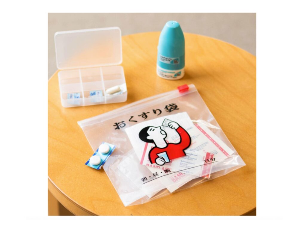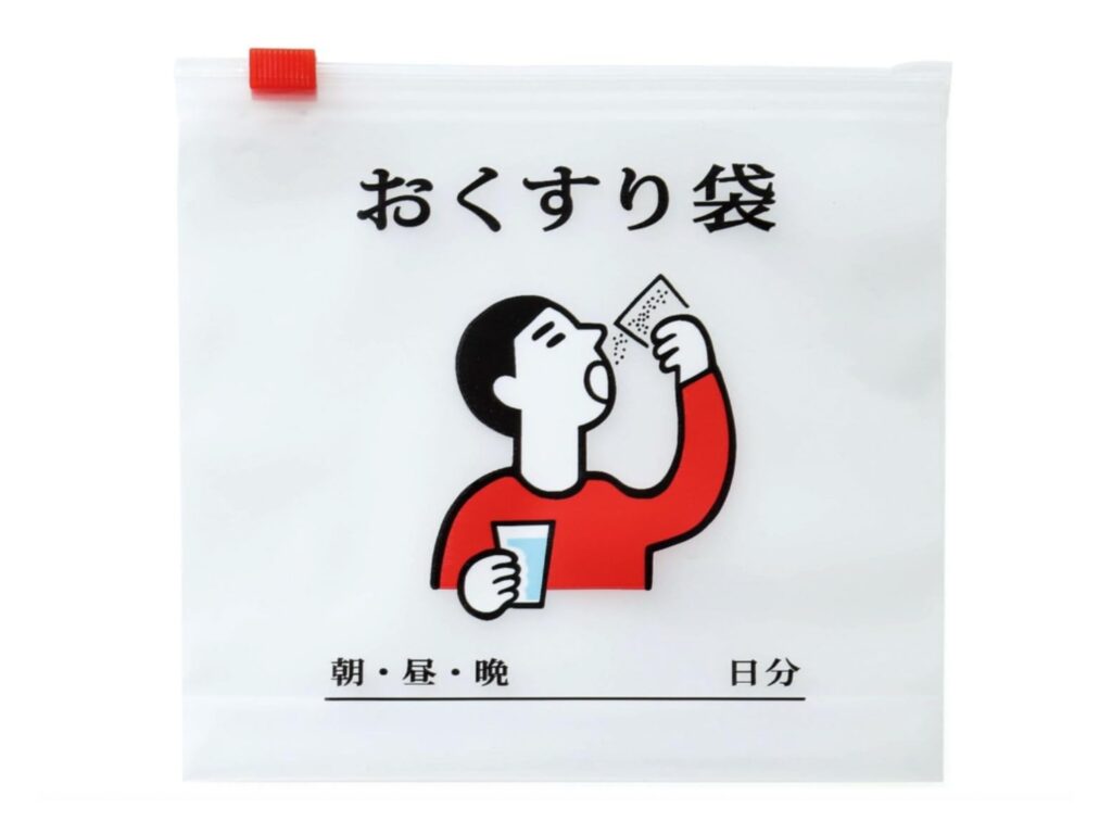 HIGHTIDEのニューレトロシリーズから登場したジッパーバッグは、「おくすり袋」という遊び心あふれるデザインが特徴です。昭和レトロな雰囲気を感じさせるフォントとイラストが、実用品でありながら持っているだけで楽しい気分にさせてくれそうです。6枚セットなので、薬の種類別に分けたり、日数分で仕分けたりと、自分なりの整理方法で活用できます。
